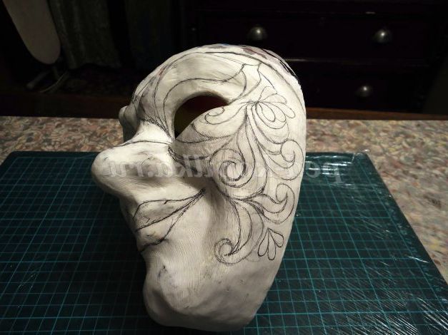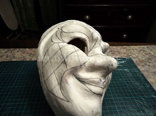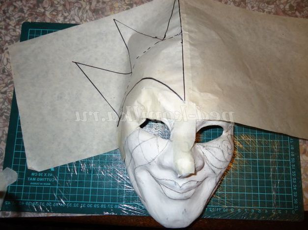 7. Прикладаємо аркуш паперу до масці і малюємо нижній ярус, що закриває лоб.