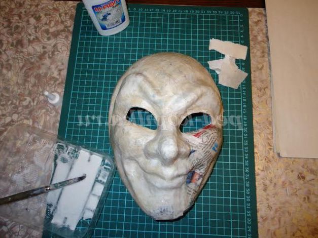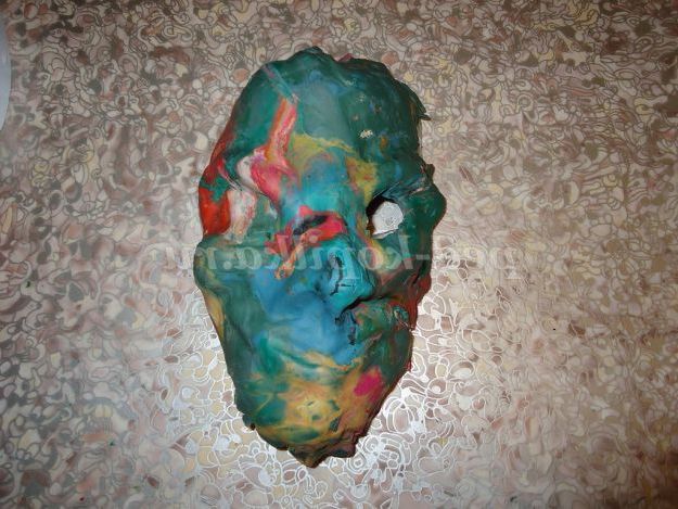 3. Готову маску з пластиліну змащуємо будь-яким кремом для рук або вазеліном, щоб маска могла легко відокремитися від наклеєного пап'є-маше.