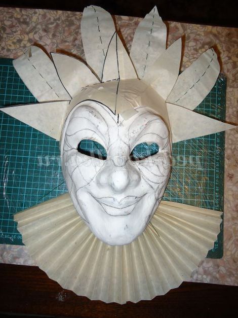 18. І останній штрих. Шиємо комір, оформлюючи його тасьмою. Збираємо горловину і приклеюємо до масці.