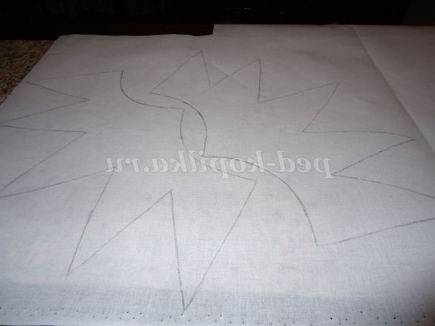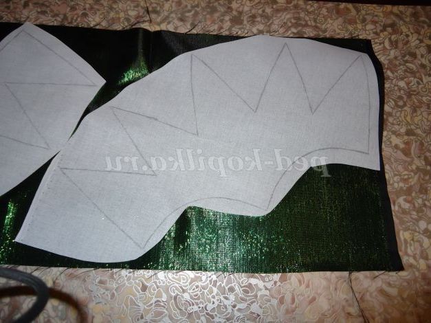13. На склеювальний дублерин переводимо паперову викрійку з допомогою простого олівця