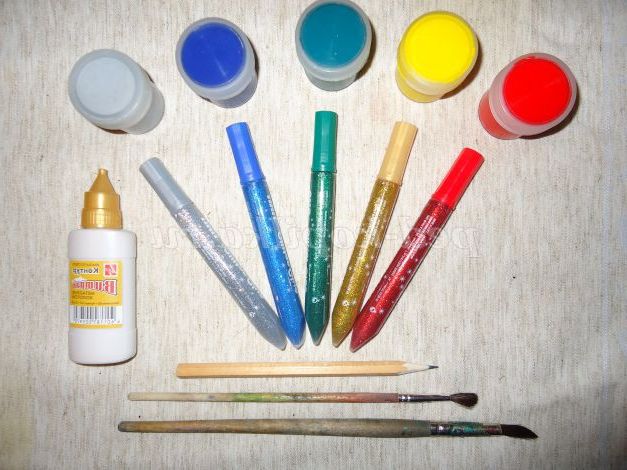 3.Акриловые фарби (червона, жовта, прозора, синя, срібна)