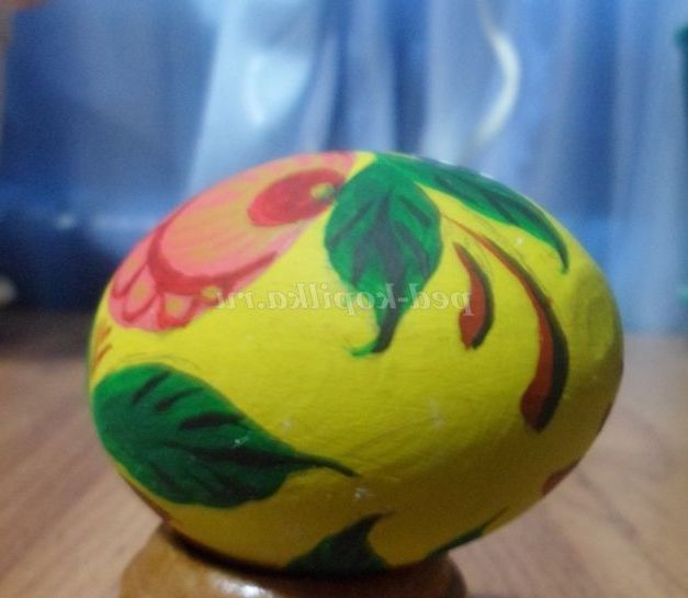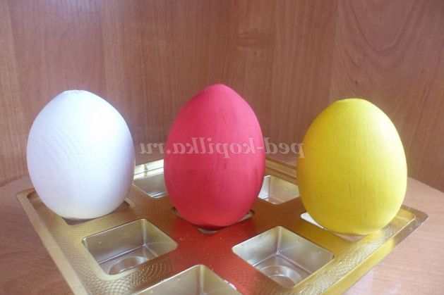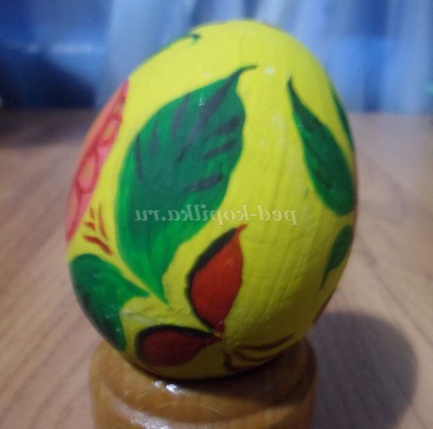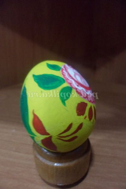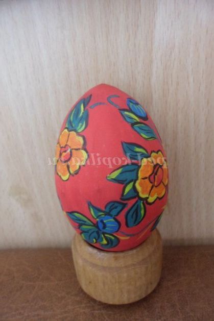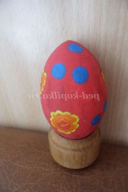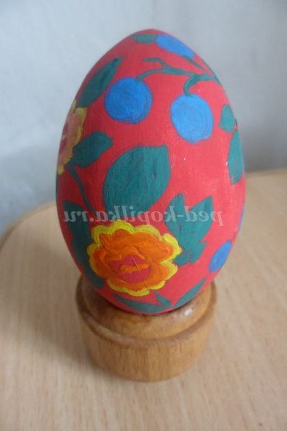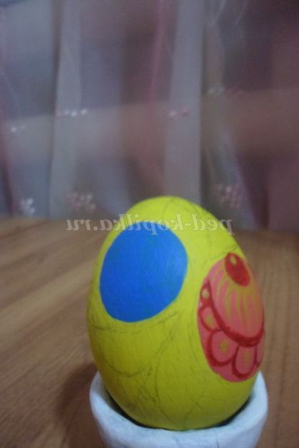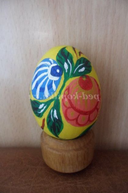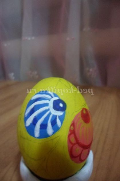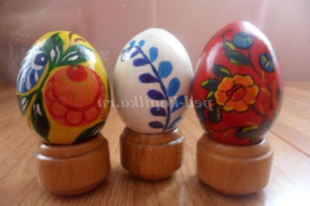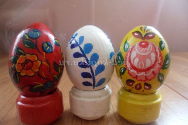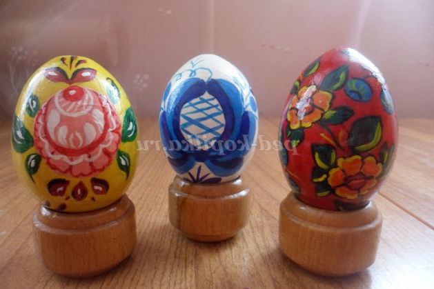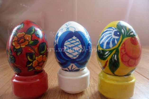 а можна на підставки пофарбовані в тон з кольором яєць, також покритих лаком.