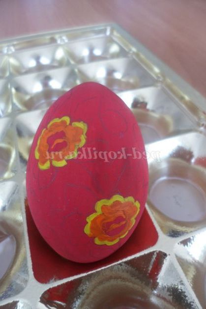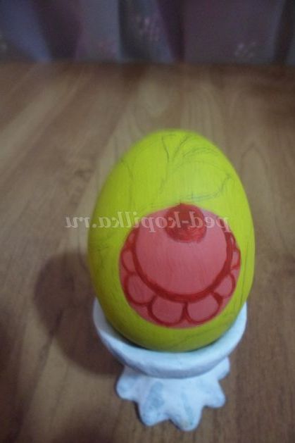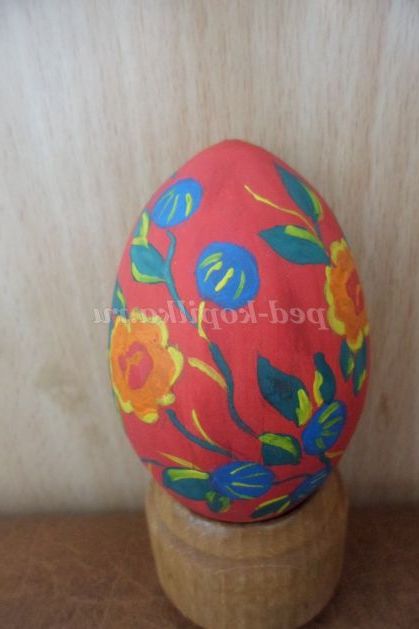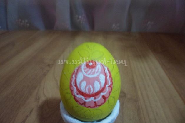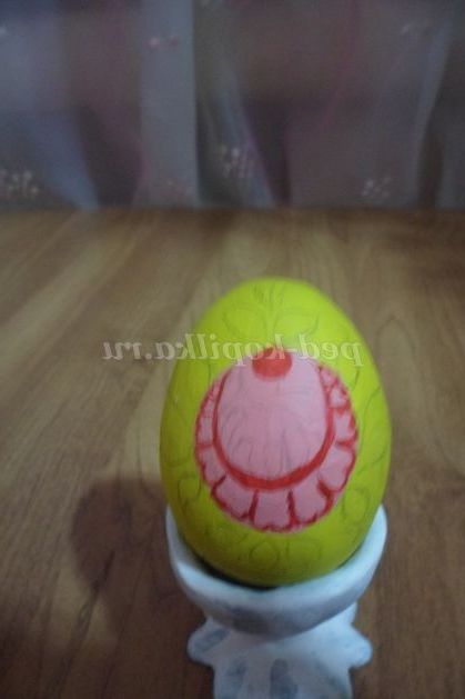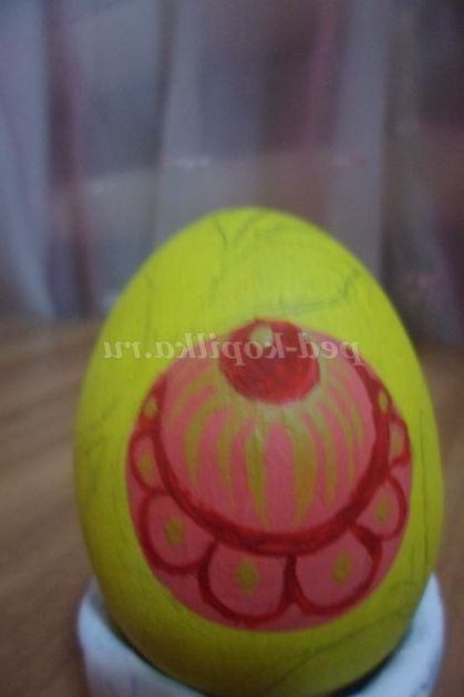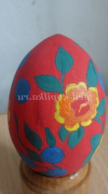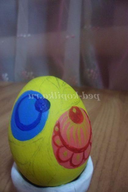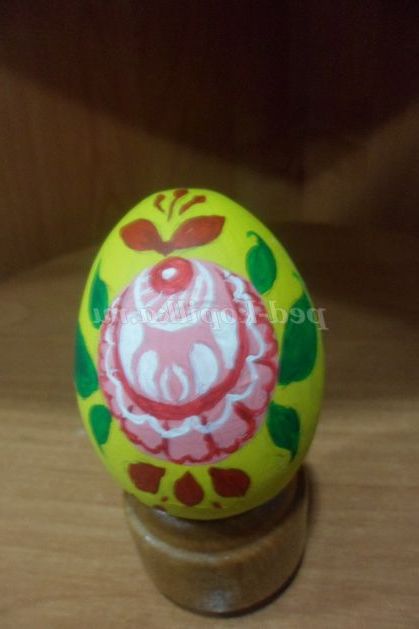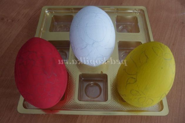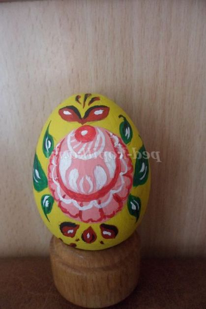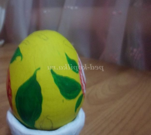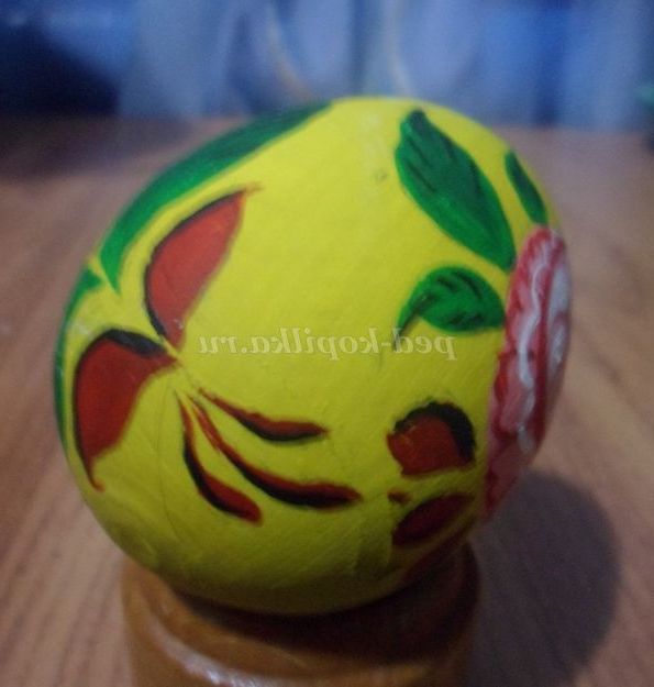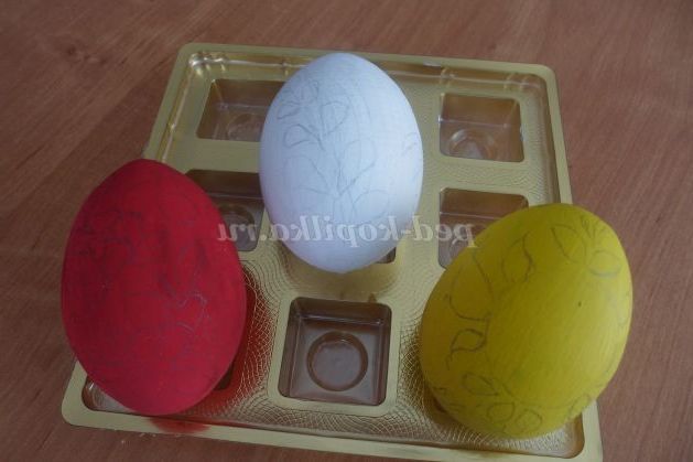 а можна на підставки пофарбовані в тон з кольором яєць, також покритих лаком.