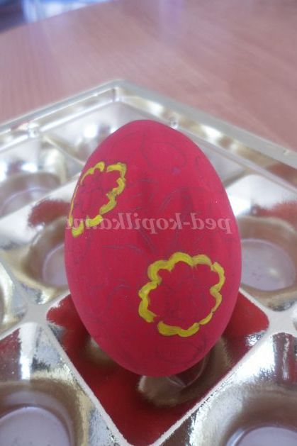 Дайте добре висохнути і намалюйте на формах візерунки простим олівцем, на білому-Гжельские візерунки, на жовтому - Городоцькі, на червоному - Полховско - Майданские.