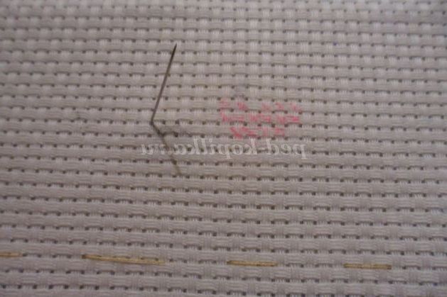Перший етап. Візьміть голку з ниткою, зробивши вузлик, і з виворітного боку вставити голку в точку правого верхнього кута.