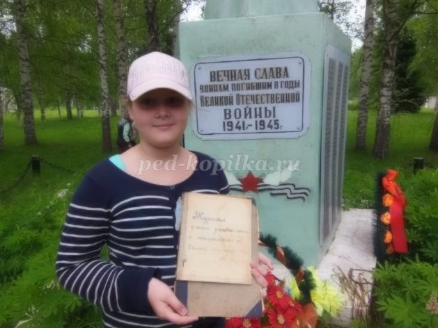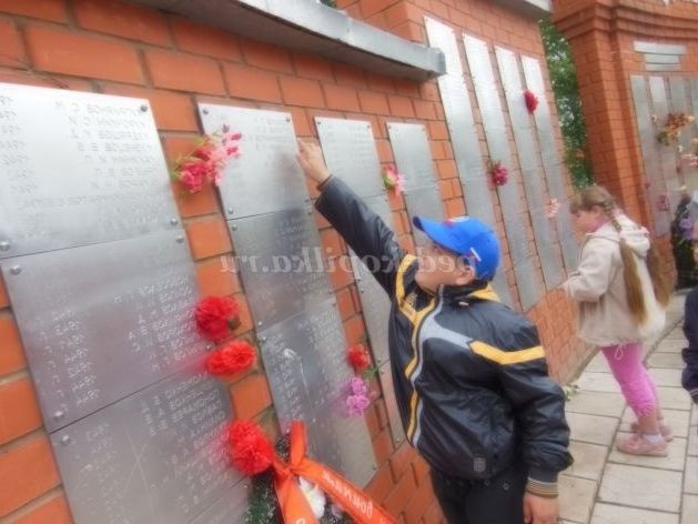 У селі Млевичи біля пам'ятника загиблим бійцям хлопців чекала Лебедєва Антоніна Олексіївна. Ця чудова жінка сама пережила війну будучи дівчинкою і поділилася своїми враженнями про той страшний час. Жителі цього села з особливою любов'ю доглядають за цим святим місцем. Хлопцям стало зрозуміло, що ці місця різні по оформленню, але вони однаково дорогі всім, хто дорожить історією своєї Батьківщини. І ми пишаємося тим, що можемо сказати спасибі всім, хто живе і загиблим громадянам нашої великої країни за наше чисте небо над головою.