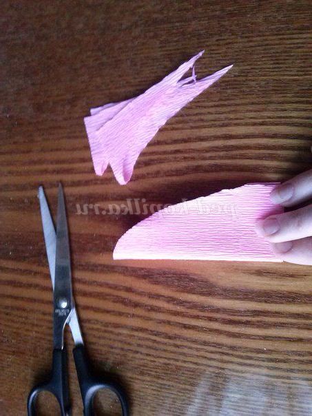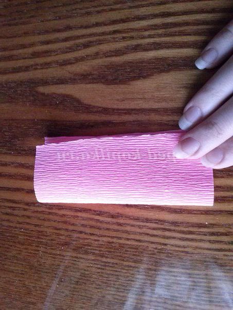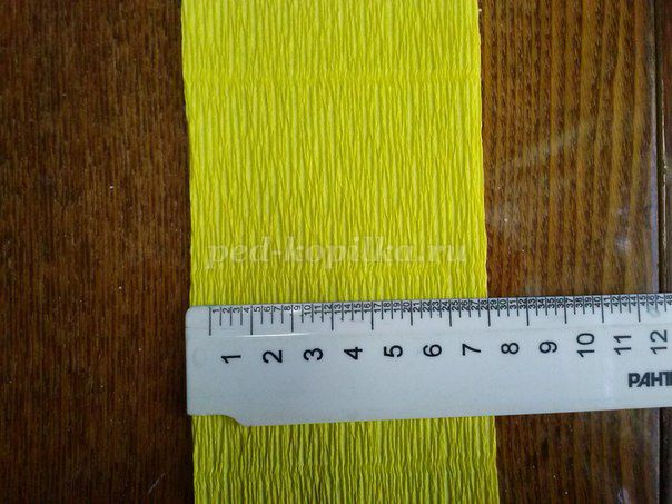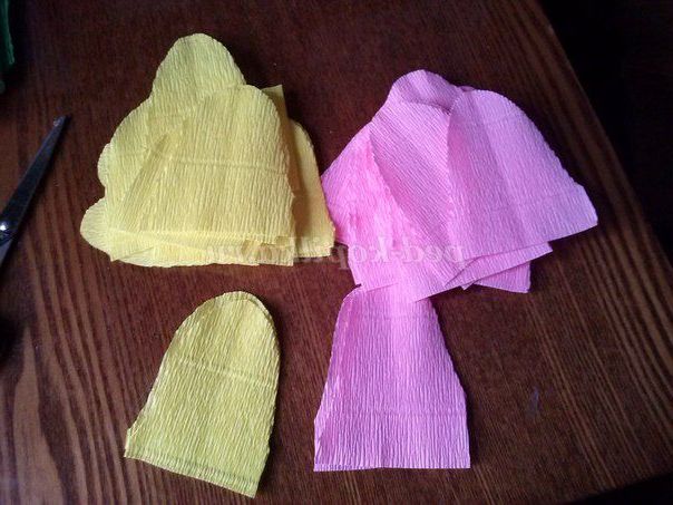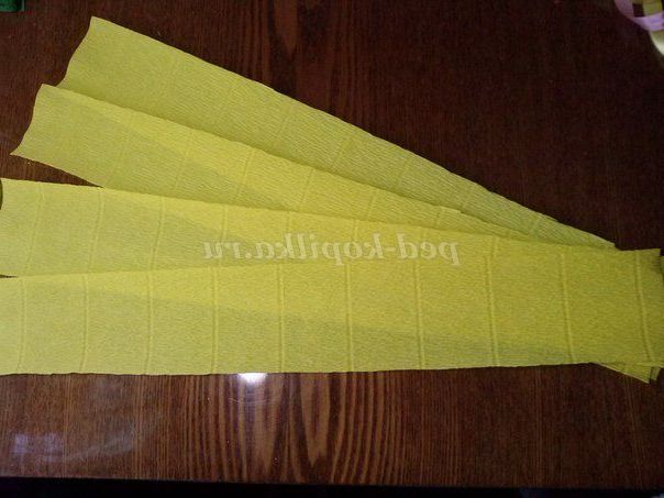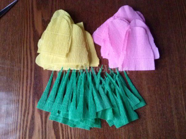 1) Нарізаємо з рожевого та жовтого гофрованого паперу смужки шириною 7 див.