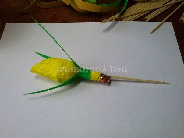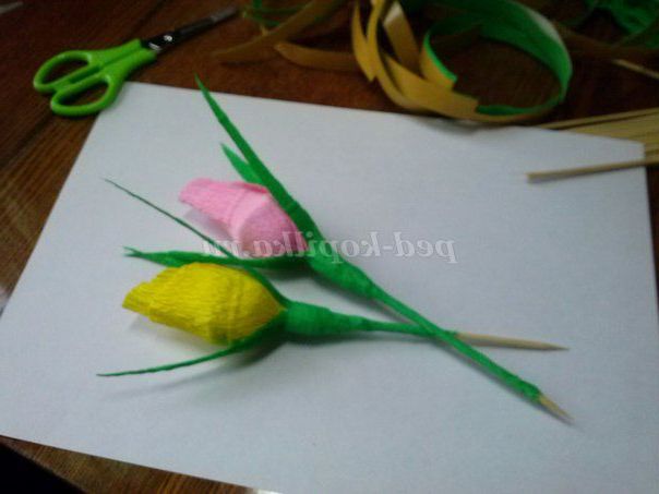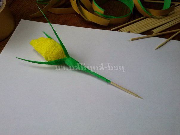 І обмотуємо цими смужками стеблинки наших троянд (ховаємо шпажки).