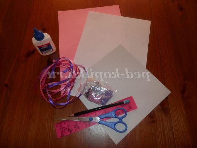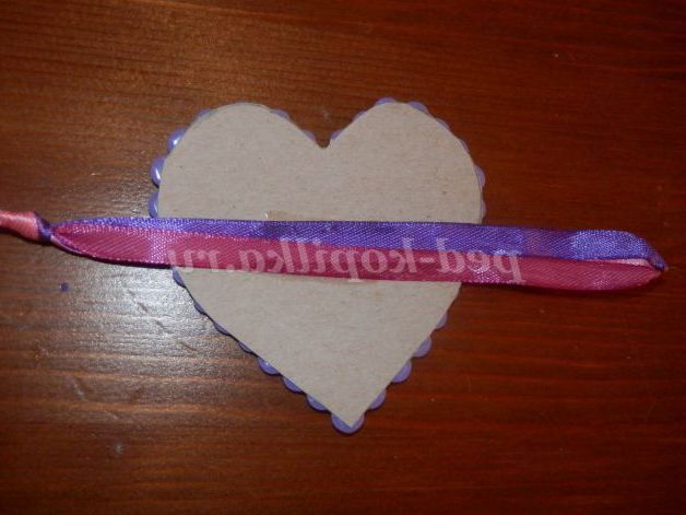 8.Отрезаем стрічки по 20 см. і приклеюємо до серця.
