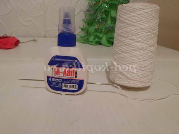 Протягуючи нитку через тюбик клею поступово обмотуємо кульку.