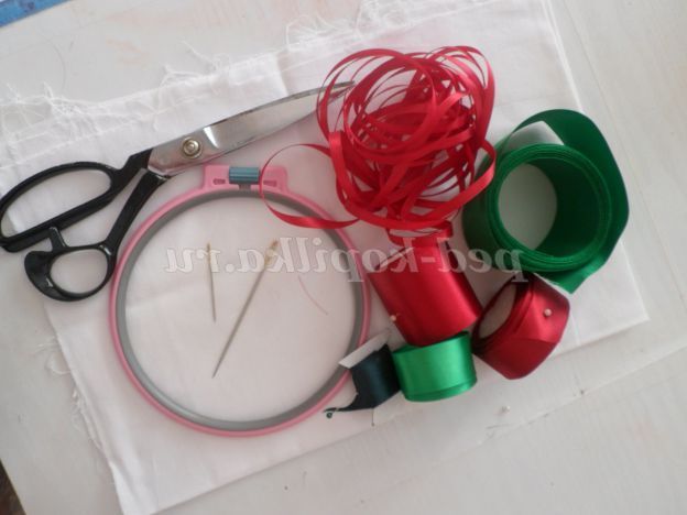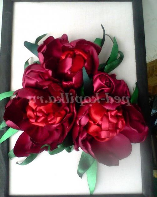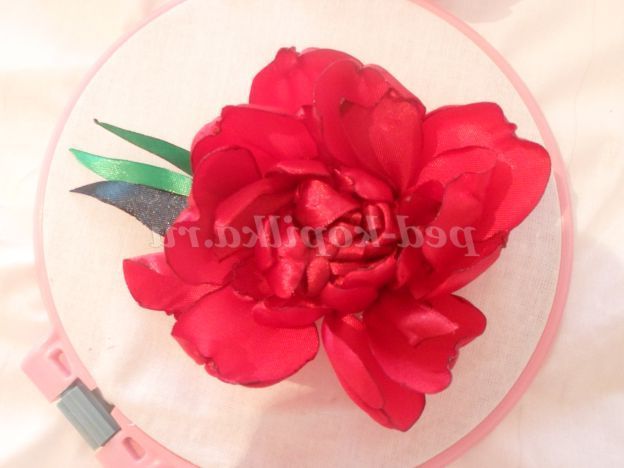 А я пропоную створити букет півоній за допомогою голки і атласних стрічок. Для роботи нам знадобитися:атласні Стрічки, шириною 5 см,2,5 см,0,5 див., для пелюсток, одного кольору. Для листочків зеленого кольору, 2-3 тони. Голки з широким вушком, ножиці, п'яльця, тканина для основи, нитки для шиття,запальничка або свічка.