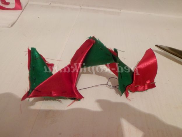 Для листочків, з зеленої стрічки вирізаємо смужки з гострими кінчиками.
