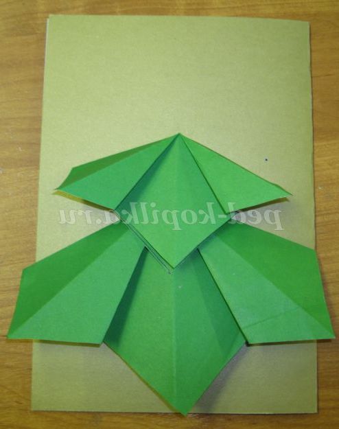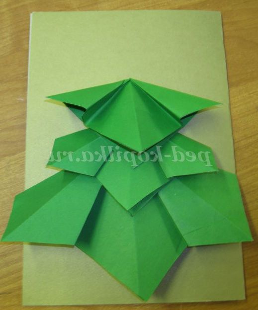 Заключний етап складання ялинки - приклеюємо верхівку з квадрата 6х6 див.