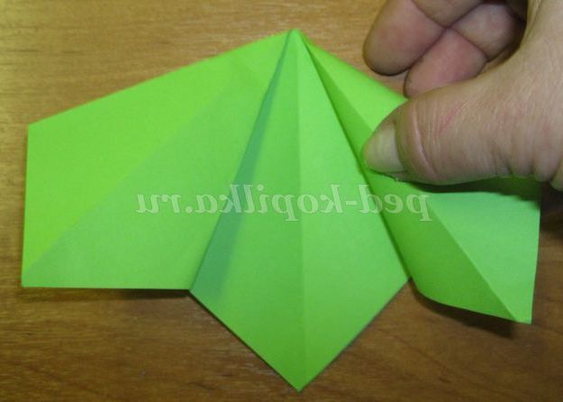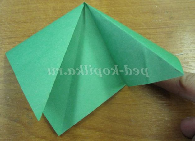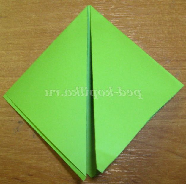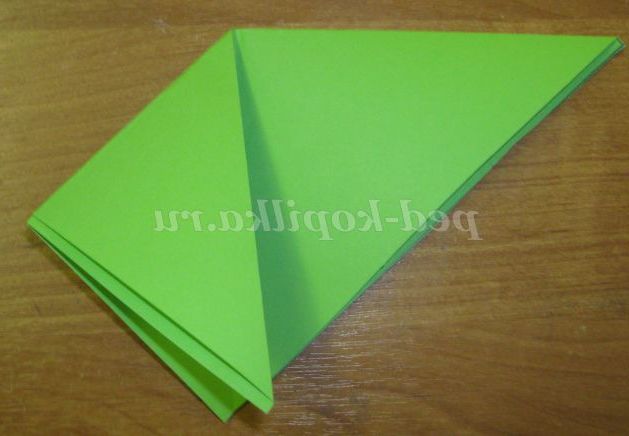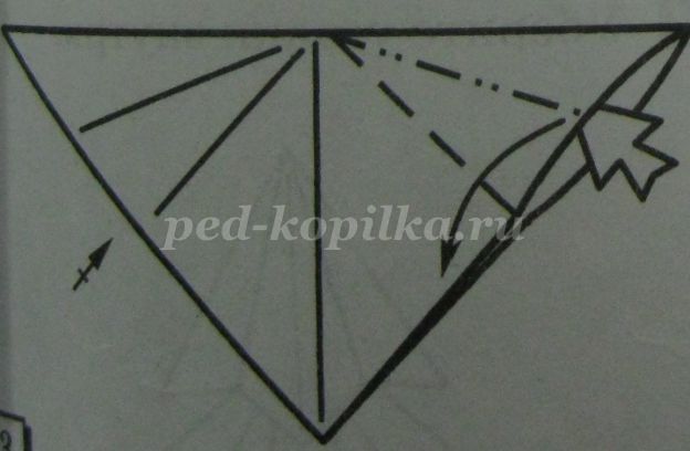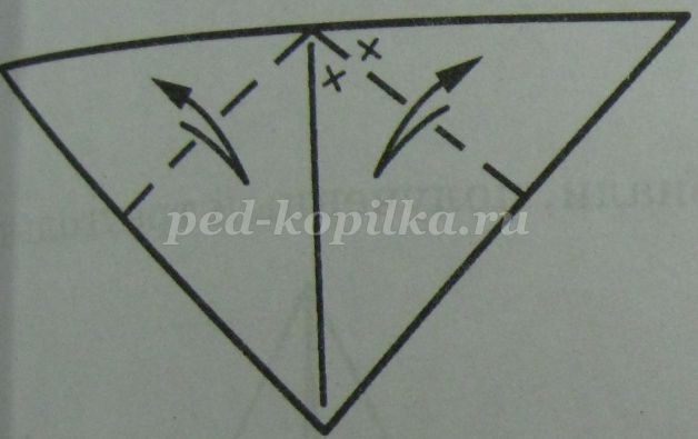 До лінії згину перегинаємо основу трикутника