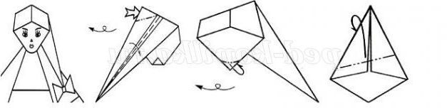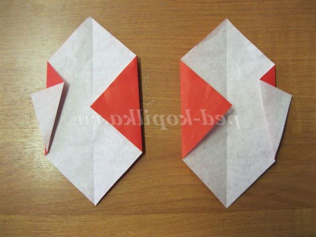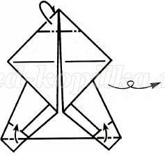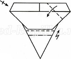 Згинаємо верхній куточок від себе, а нижні куточки - на себе і переверніть роботу.