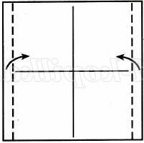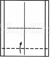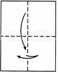1. Взяти прямокутник 6,5х5 см і перегнути його навпіл по центральній вертикалі. Скласти навпіл зверху вниз.