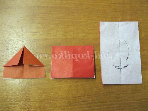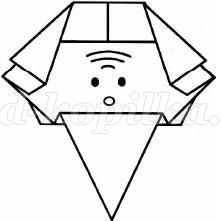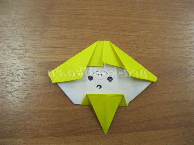 Згинаємо бічні частини голови до середини особи. Робимо бороду з допомогою складки - «блискавки»