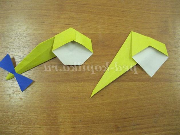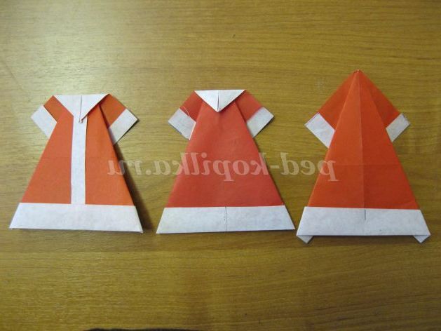 Шубка Снігуроньки виконується за таким же алгоритмом, тільки з квадрата синього паперу розміром 15х15 см.