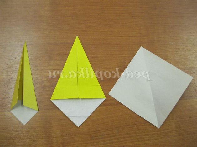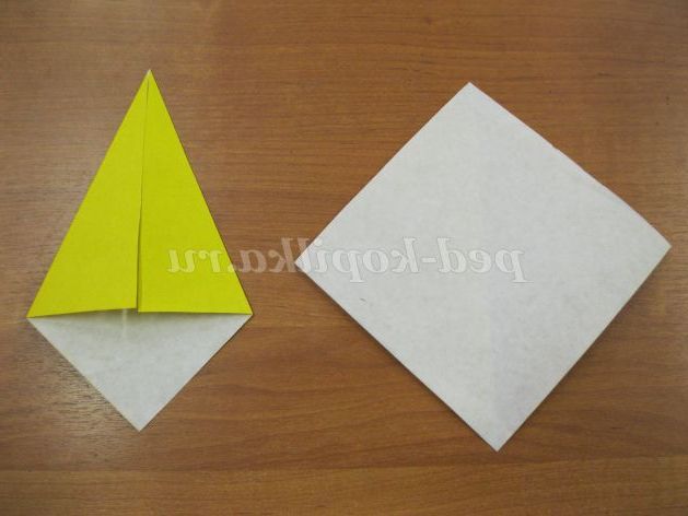 1. Беремо квадрат 9х9 див. з жовтого паперу. Складаємо базову форму повітряний змій
