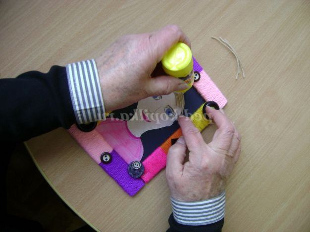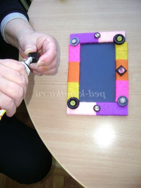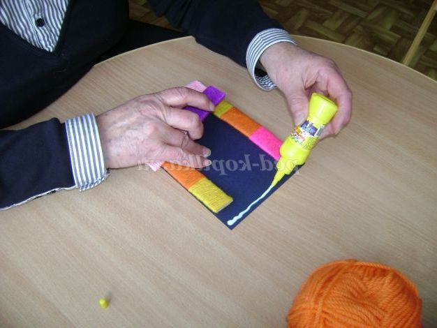 2. Наклеїти шаблони з накрученою пряжею на картон, використовуючи клей ПВА, покласти під прес.