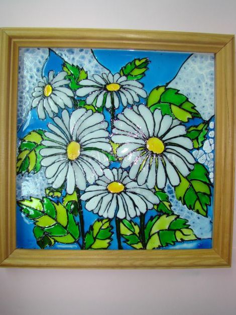 ![]() Розпис вітражними фарбами по склу. Майстер-клас з покроковим фотоМаргаритка - первоцвіт, сонячної Весни привіт!