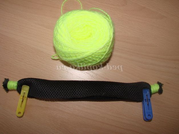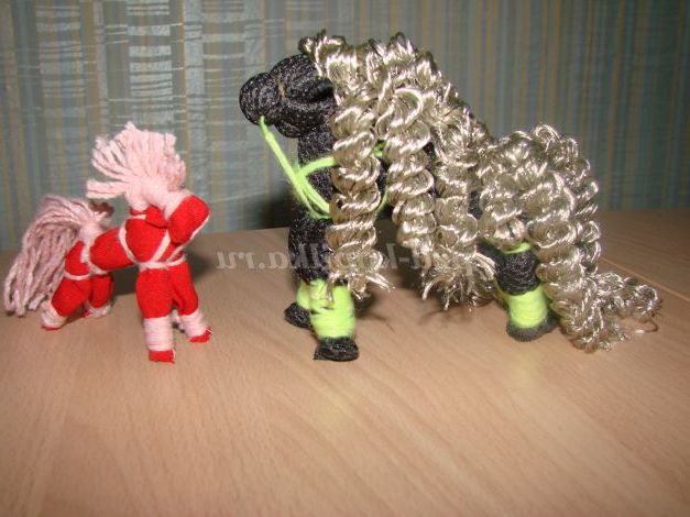 Візьмемо декоративну нитка, складемо навпіл, накинулися зашморгом на шию коня (одну, потім другу)
