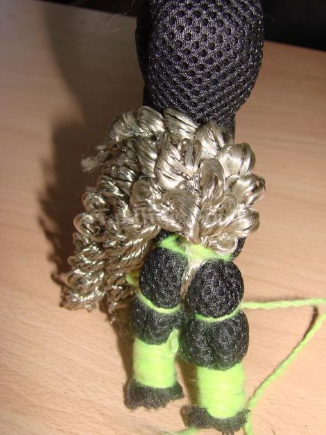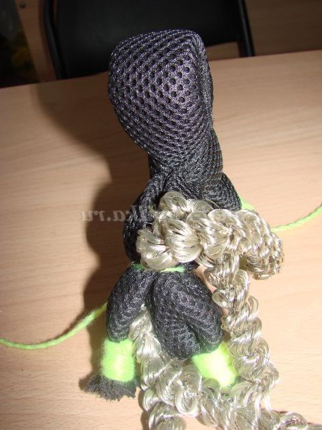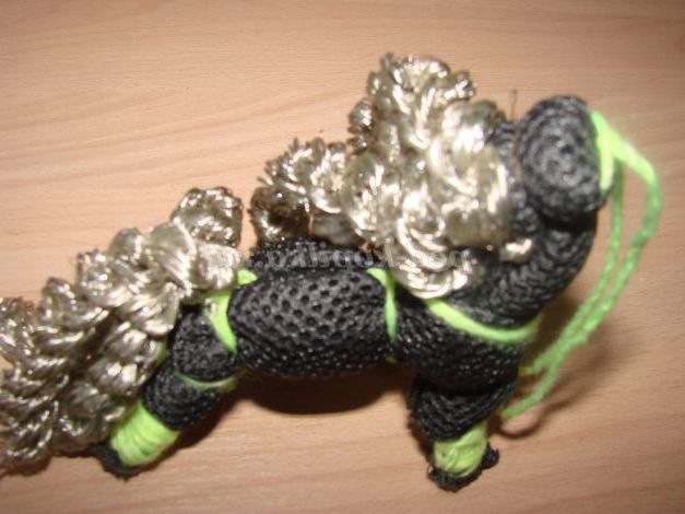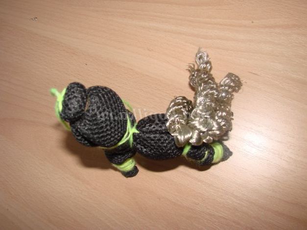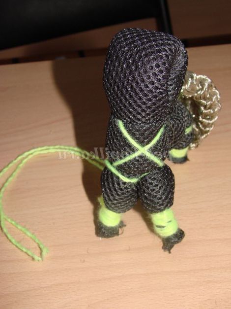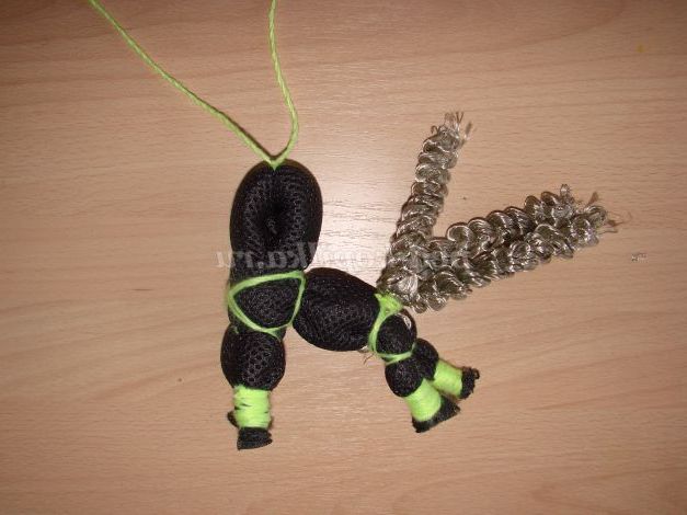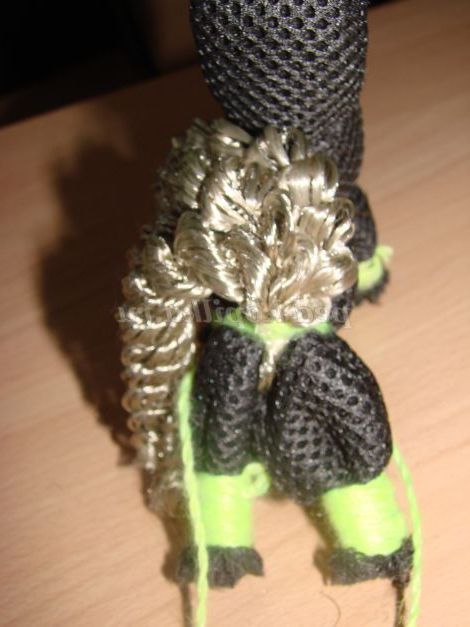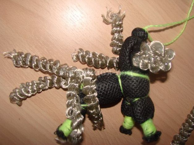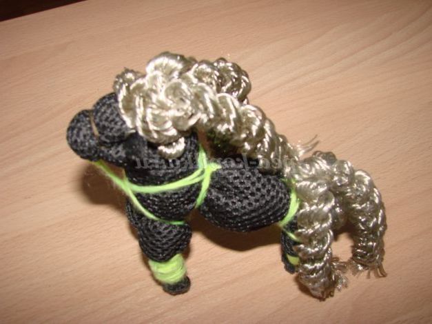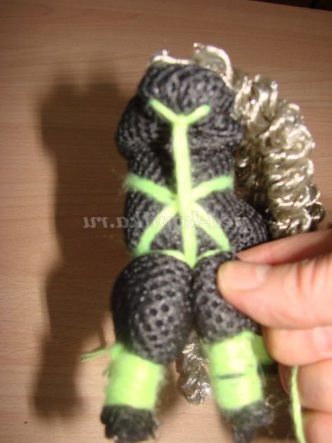 протягнемо в середину животика конячки, обернем нею перев'язку між задніми ніжками і сформуємо хвіст конячці.