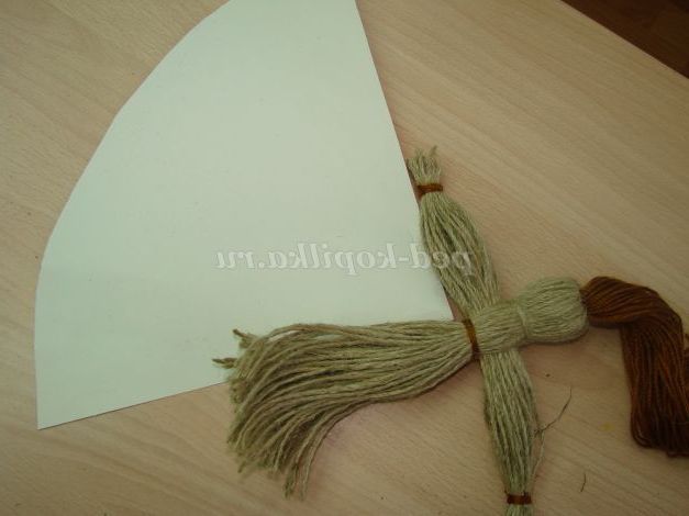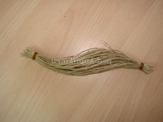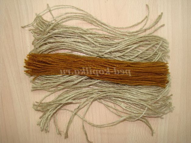 Волосся кладемо на шпагат з яких буде тіло і загортаємо (як «сосиска в тісті»).