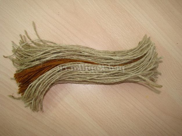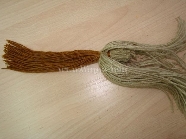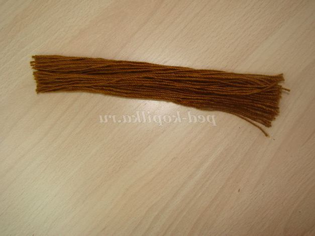 Тепер приймемось за волосся. Намотуємо нитку, з якої будуть волосся, на книгу. Я зробила обертів 20, знову розрізаємо.