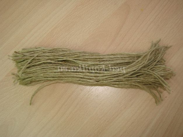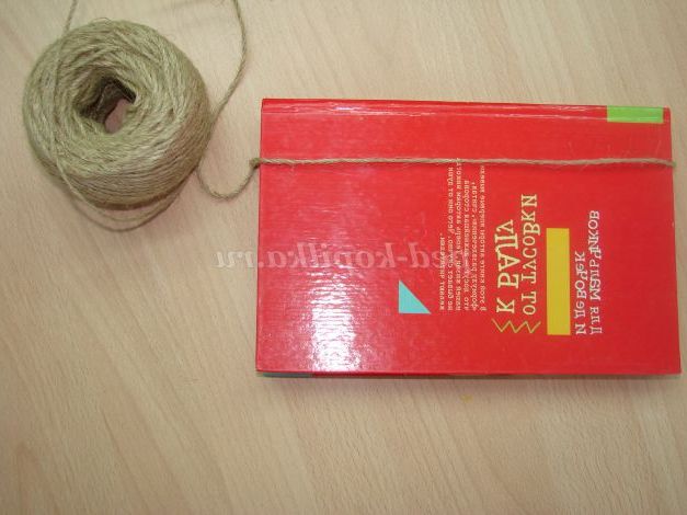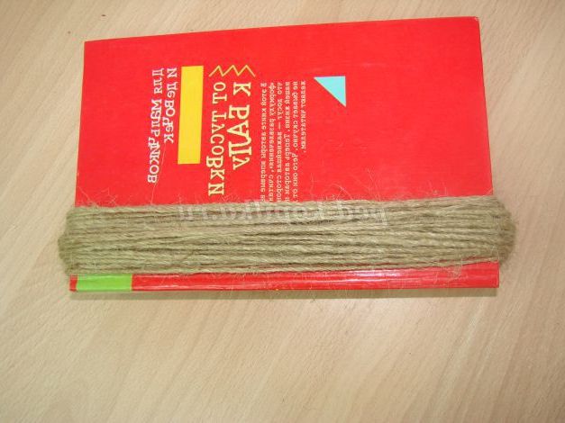 Намотуємо шпагат, з якої буде лялька, на книгу. В даному випадку я зробила приблизно 50 обертів. Акуратно розрізаємо наш пучок з обох сторін.