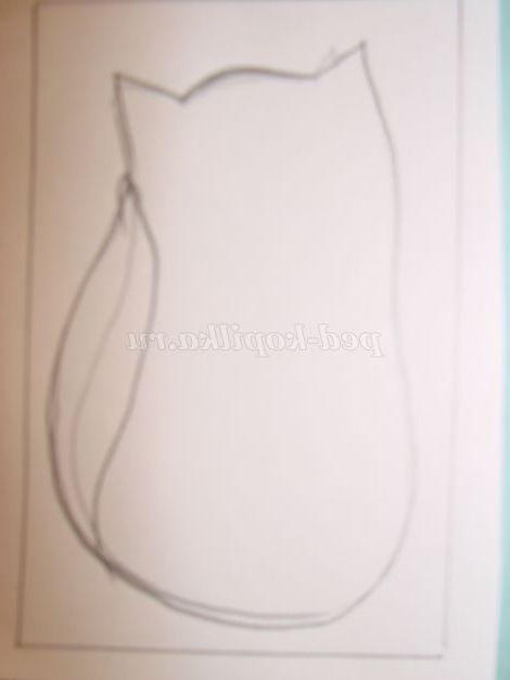 Обведемо внутрішню частину рамочки на папір і в цьому «віконечку» намалюємо кота.