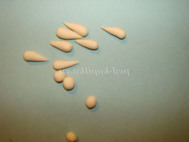 Як бачите, кулька - базова деталь, яку "перетворюємо" і ніжки, і вушка , і-в квіточку.
