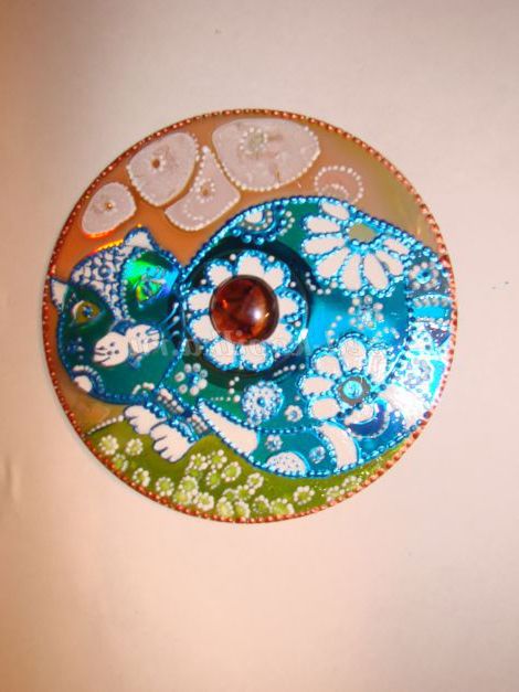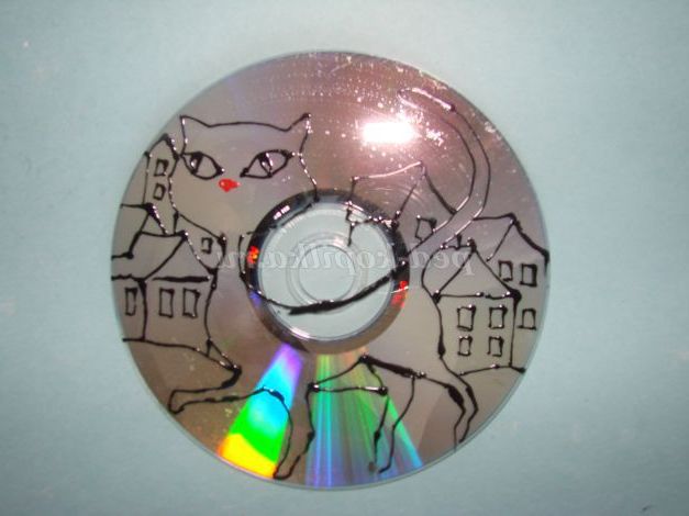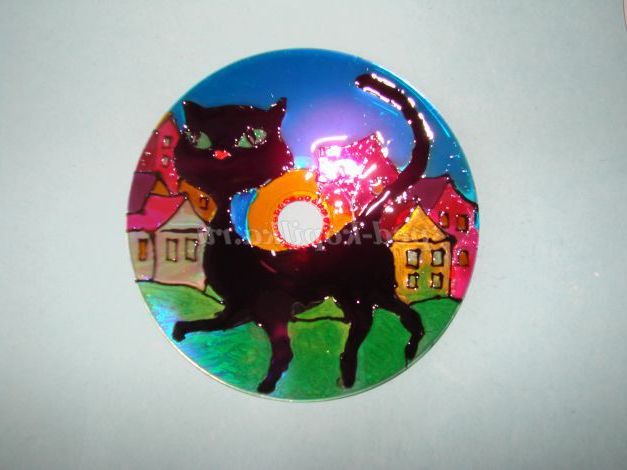 Розпис компакт - дисків вітражними фарбами. Майстер-клас. Коти