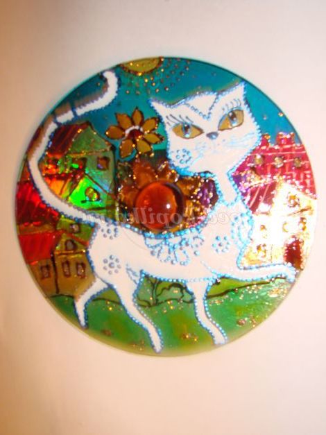В даному випадку я поєднала корисне з приємним. По-перше, зайвий раз поупражнялась розписувати вітражними фарбами, а по-друге, у мене з'явився новий примірник у моїй колекції кішок!