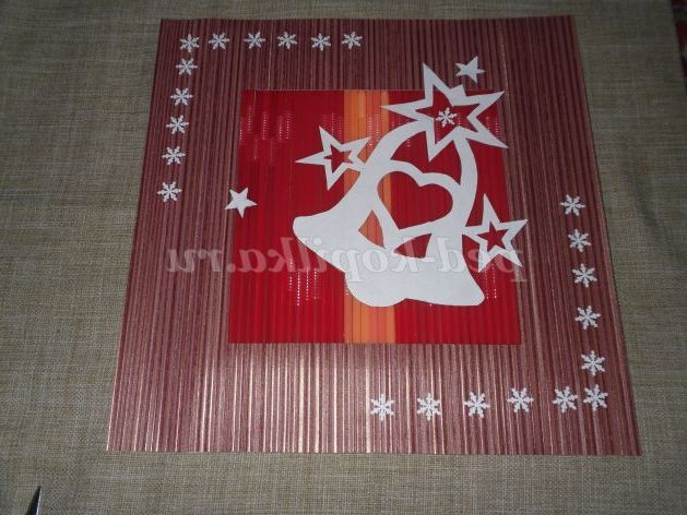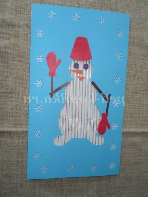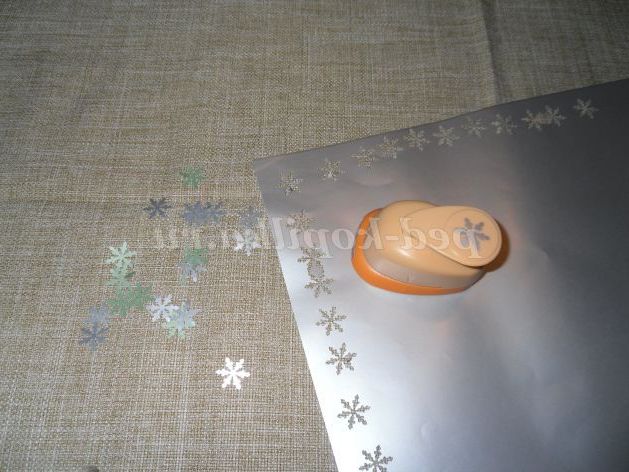 - якщо на вихідну саморобку накласти силует ялинки і також оформити сніжинками, отримуємо ще одну красуню у сніговому вбранні.