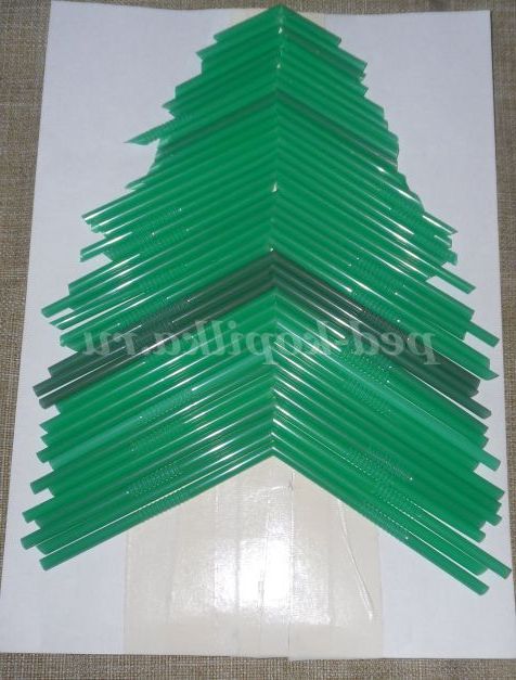 З зелених соломинок можна різними способами виготовити різні ялинки, в даному випадку використана форма трикутників різної величини