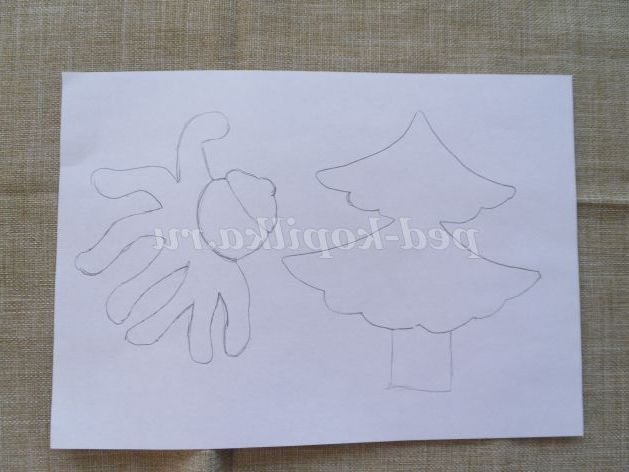 - Простим олівцем на аркуші паперу обвести контур ялинки і намалювати фігурку восьминіжки.