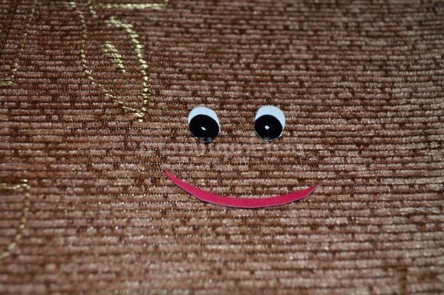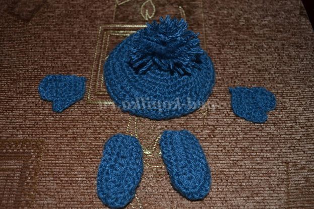 8. Далі придумайте, як буде прикрашений ваш сніговик. У мене пов'язаний берет, рукавички, черевички та хустку.