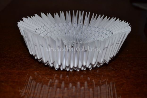 2. Виріб переверніть і в 4-му ряду додайте 6 модулів, всього 40 модулів в ряду (на пару сусідніх куточків замість одного модуля надіньте два.