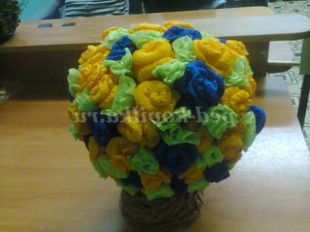 1.Шаг. Підбираємо колірні рішення майбутнього букета, я вибрала такі кольори.