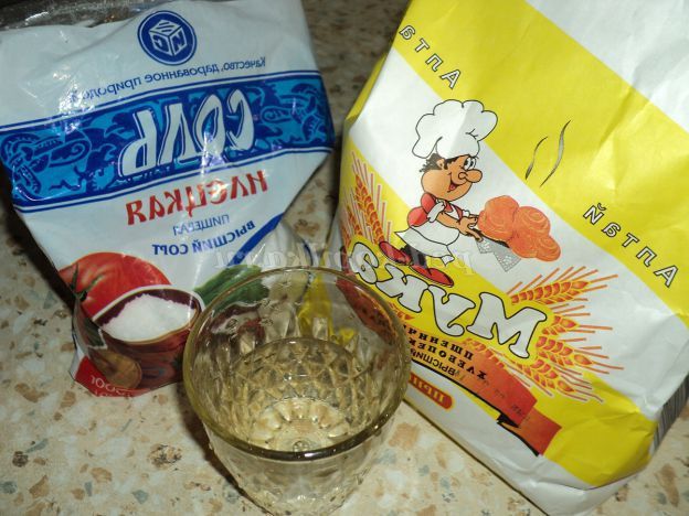 3. Для виготовлення тіста : борошно 1 склянку, 1/2 склянки солі, 1/2 склянки води.