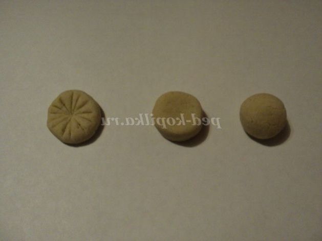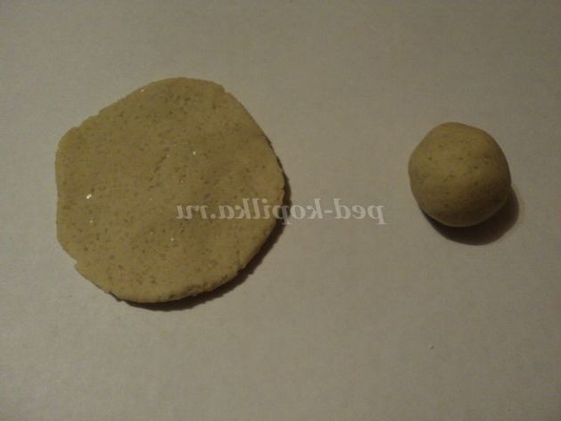 7. Приступити до виготовлення цветов.Из тіста скачати кульку, потім розплющити його.