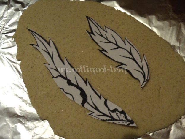 4. Розкачати тісто і вирізати за шаблоном листя стеком.