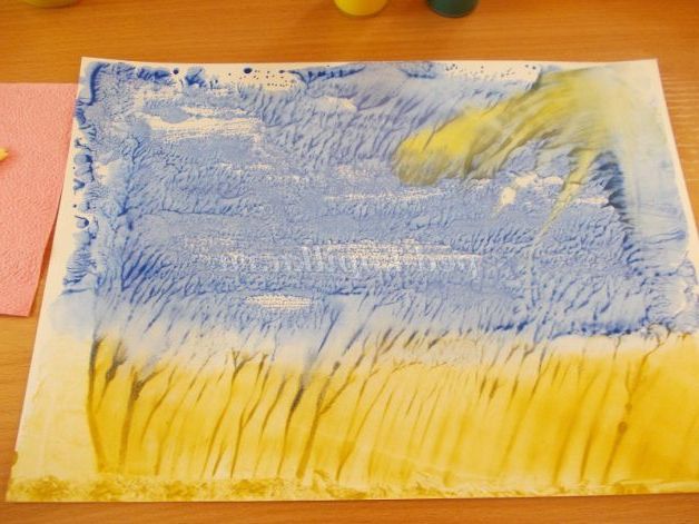 Пропонуємо дітям вибрати колір. Для неба світлішими беремо, для моря більш насичений: