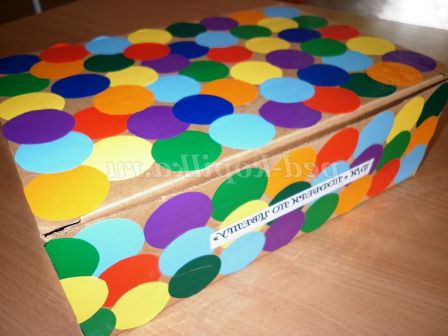 Далі наклеїти кружечки з кольорової самоклеющейся паперу.(