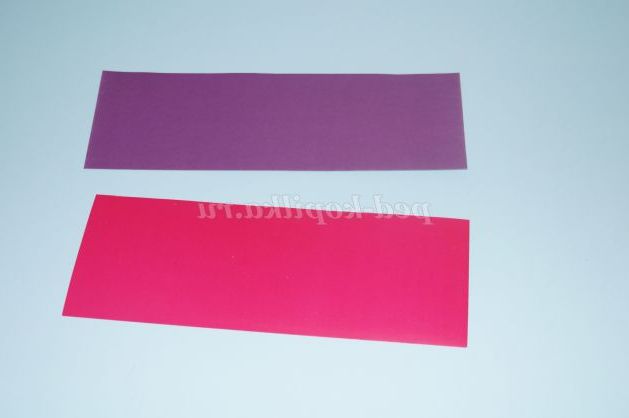 Для цього беремо картон фіолетового та малинового кольору, згинаємо навпіл і розрізаємо.