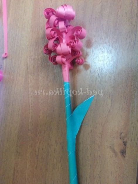 9. Беремо кінчик квітки і приклеюємо його до стеблинки по діагоналі, плавно спускаючись до середини стебла