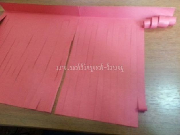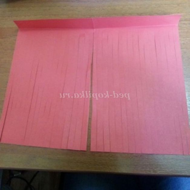 2.Берем лист і робимо невеликий загин зверху і нарізаємо соломкою.
