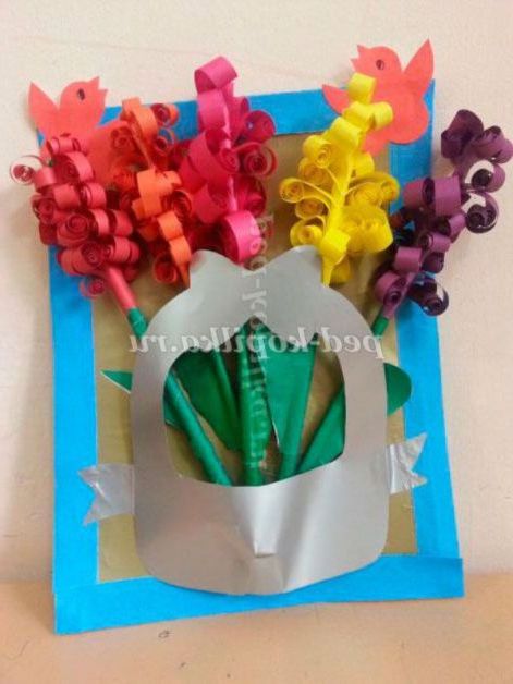 1. Готуємо 5 різнокольорових аркушів кольорового паперу (за бажанням можна зробити букет побільше).