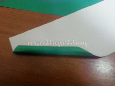 6. Смужку зеленого листа скручуємо трубочкою взявши за край паперу